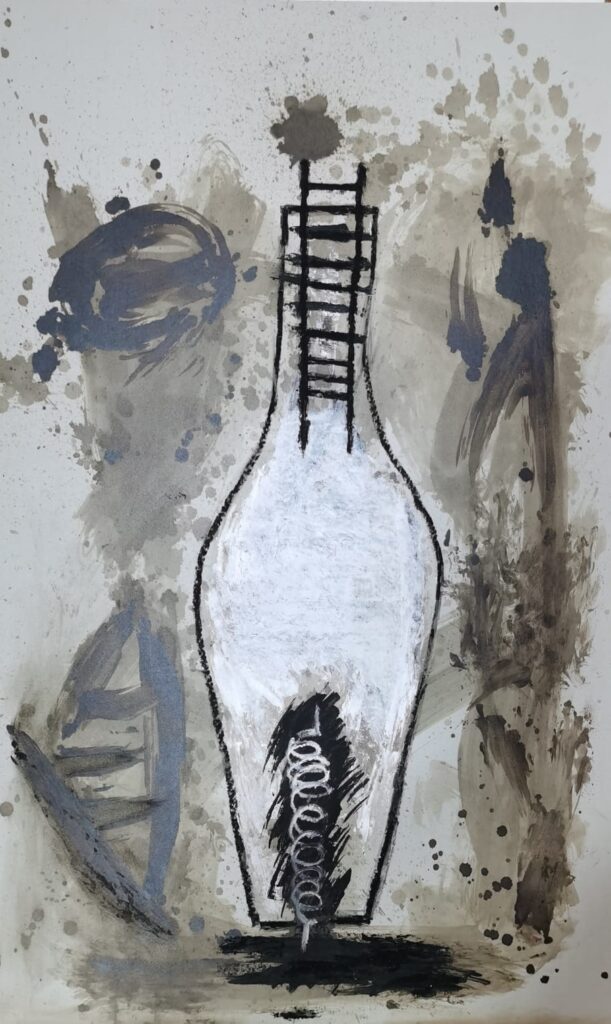 Di seguito un estratto deI testo in catalogo di Francesco Correggia, artista e scrittore, collega di Giuseppe Di Lorenzo a Brera e compagno di viaggio nella ricerca artistica.